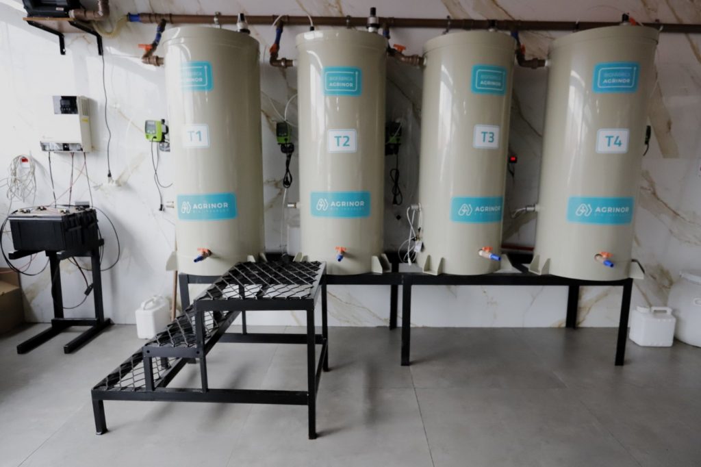 “A biofábrica é uma ferramenta para você conseguir produzir os bioinsumos na própria fazenda ou na área que você decidir. Com isso você ganha mais personalização, um grande potencial de sustentabilidade, redução do uso de produtos químicos na produção para fazer um cultivo mais sustentável”, afirmou Filipe Guarany, Diretor de Operações da Agrinor, empresa parceira na construção da biofábrica.