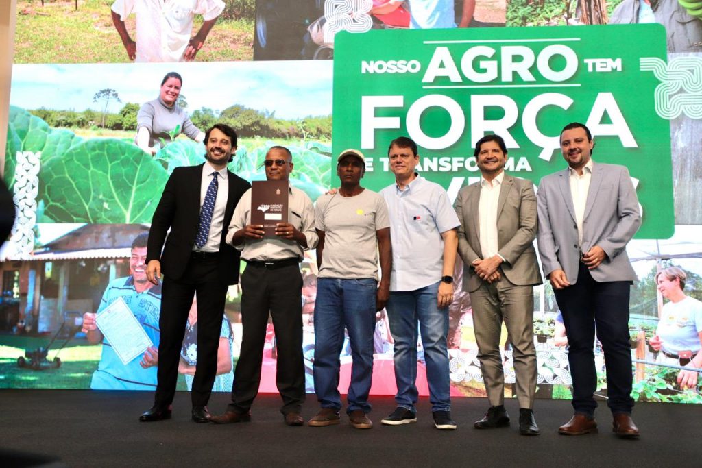 A agenda de regularização fundiária e ambiental também ganhou destaque com a assinatura do decreto que institui o novo Programa Paulista de Regularização de Terras, modernizando regras, procedimentos e amplia os trabalhos de regularização da Fundação Itesp no estado. Durante a cerimônia foi entregue o título rural de número 5 mil ao casal Valdir Aparecido Teles e Leila Claudia Santos Teles, do Assentamento Água Limpa 2, em Presidente Bernardes. Na área ambiental, o governo celebrou a validação do CAR de número 200 mil, entregue ao produtor de café Jesus Donizete Minatel, de Torrinha. Também foi formalizada a entrega do primeiro Cadastro Ambiental Rural (CAR) a um assentado, acompanhada da primeira unidade habitacional construída pela parceria ITESP e CDHU para o produtor Marco Antônio Reis e Eliana Aparecida da Silva, do Assentamento Dom Evaristo Arns, em Marabá Paulista, que abriga 42 famílias.