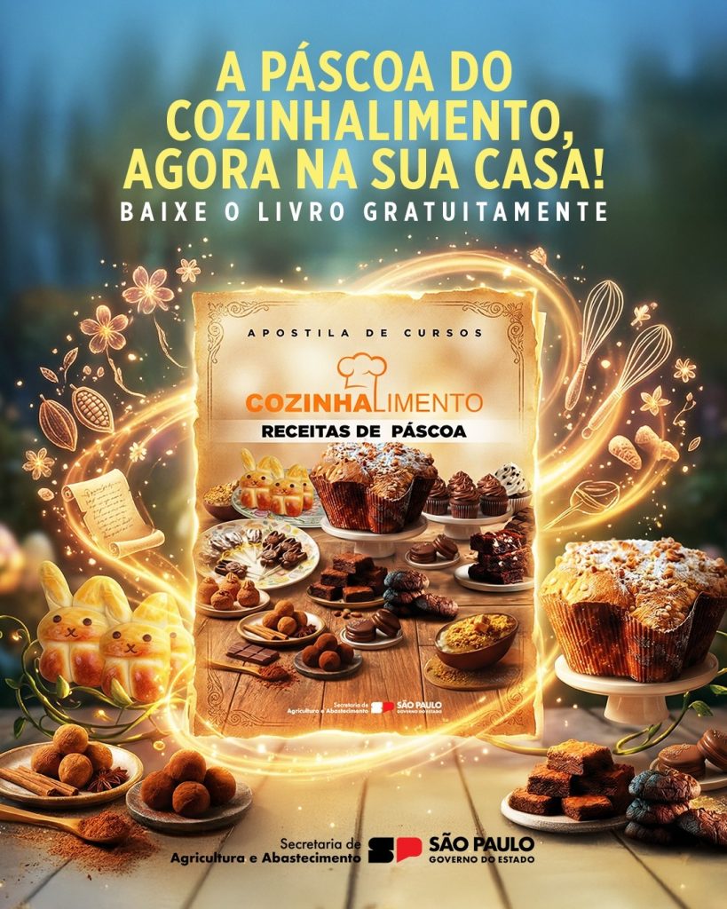 Com a proximidade da Páscoa, o projeto Cozinhalimento, da Secretaria de Agricultura e Abastecimento do Estado de São Paulo, amplia o acesso à qualificação profissional e passa a disponibilizar gratuitamente para toda a população a apostila do curso especial de receitas de Páscoa.