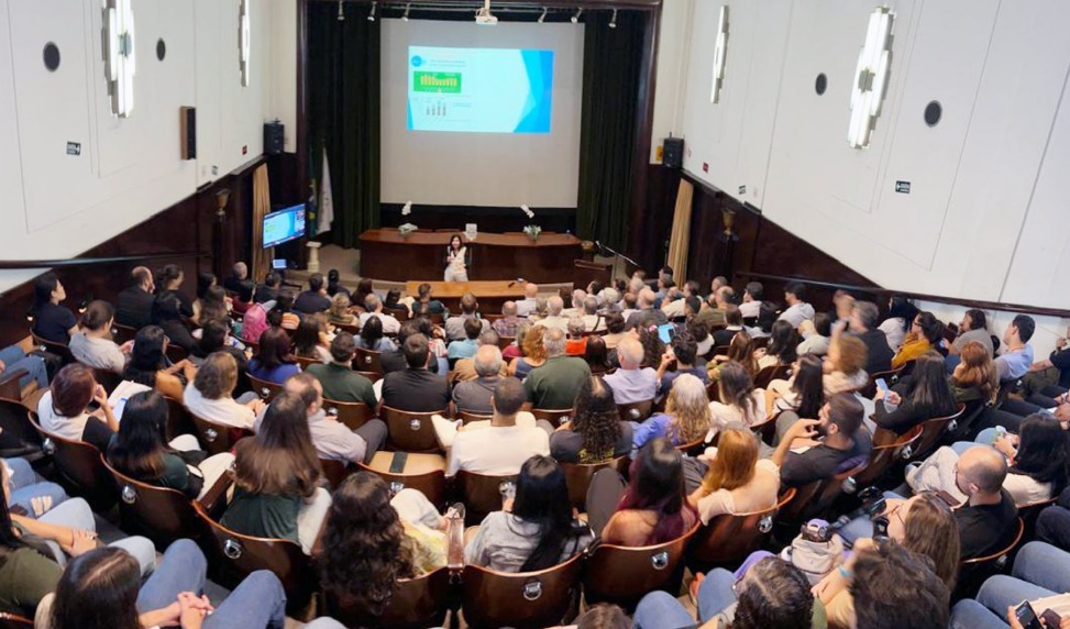 O ponto alto da programação ficou com a Aula Magna ministrada por Mariângela Hungria (Embrapa Soja), pesquisadora de destaque nacional e internacional e ganhadora, em 2025, do “Prêmio Mundial da Alimentação” (World Food Prize, WFP), considerado o “Nobel” da Agricultura. Em sua fala, Mariângela compartilhou sua trajetória profissional, experiências e reflexões sobre ciência, inovação e dedicação à pesquisa. A convidada emocionou a todos ao destacar as dificuldades que enfrentou, desde a escolha pela Engenharia Agronômica, incluindo o descrédito em um ambiente predominantemente masculino e, por vezes, machista, até os desafios de conciliar a carreira acadêmica com a maternidade. Ao final da apresentação, foi aplaudida de pé, em um reconhecimento do público à excelência de sua trajetória acadêmica.