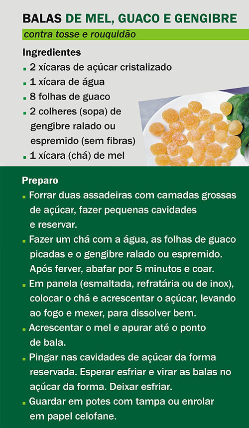 Acesse aqui os vídeos do passo a passo das receitas de Xarope de guaco e mel e balas de guaco e mel: