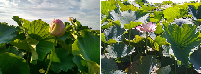 Se a visão do campo de flor de lótus evoca um jardim do nirvana − o estado total de paz interior −, é importante saber que tanto o plantio quanto a adubação e a colheita das “batatas”, como são comumente tratados os rizomas, exigem técnica e perseverança, já que todo o trabalho é feito na lama. A água é um fator-chave no cultivo dessa planta flutuante, bastante resistente a pragas, e cuja flor é símbolo do Budismo. Não só pela beleza de suas pétalas brancas ou em tons de rosa, a flor de lótus carrega o significado de renovação e pureza. Suas grandes folhas possuem a capacidade de manterem-se sempre limpas e secas, ainda que sejam plantas lodosas.