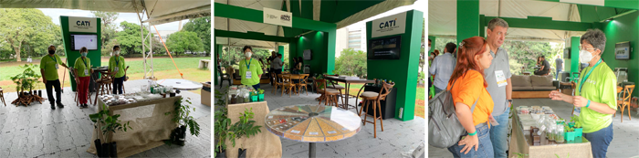 A engenheira agrônoma Maria Paula Domene, que participou como representante do Laboratório de Sementes e Mudas, da Banca de Avaliação de start-ups na categoria “Tração e Escala”, informa que o público pôde ver, no estande da CATI, o método de micropropagação de mudas de morango e mandioca, acompanhar testes de germinação de diversas espécies e conhecer exemplares de sementes de grandes culturas e olerícolas.