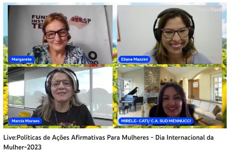 Para comemorar o mês das mulheres, que tem o dia 8 de março − “Dia Internacional da Mulher” − como data central, a Coordenadoria de Assistência Técnica Integral (CATI), em parceria com a Fundação Instituto de Terras do Estado de São Paulo (Itesp) − que, hoje, também integra a estrutura da Secretaria de Agricultura e Abastecimento −, realizou a Live Políticas de ações afirmativas para mulheres.