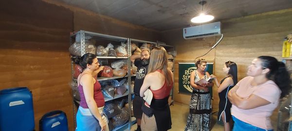 No quilombo, também foi visitada a Casa de Sementes, recinto climatizado construído a partir do barro e de pedras da região, em resgate à cultura tradicional, onde são armazenadas as sementes coletadas pelos quilombolas.
