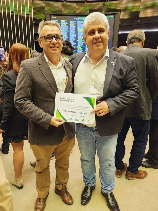 Em sessão solene realizada na Câmara dos Deputados, em Brasília (DF), ontem, 4/12, João Menezes de Souza Neto, engenheiro agrônomo da Casa da Agricultura de Anhumas, ligada à Coordenadoria de Assistência Técnica Integral (CATI) Regional Presidente Prudente, foi homenageado durante a celebração aos 75 anos da Extensão Rural e em alusão ao Dia do Extensionista Rural, comemorado em 6/12.