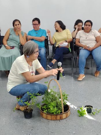 | Expositora de trabalho científico | Dra. Nilsa apresentando sobre as plantas medicinais |