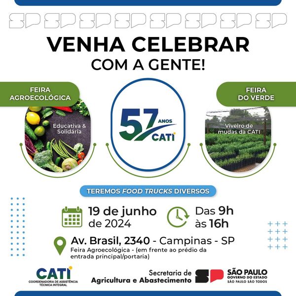 E a contagem regressiva começou! No próximo dia 20/6, a CATI completa 57 anos de uma história que se confunde com a do agro paulista, construída caminhando lado a lado com o produtor rural