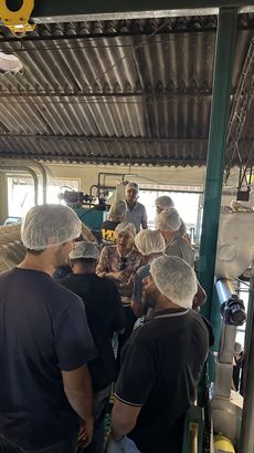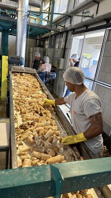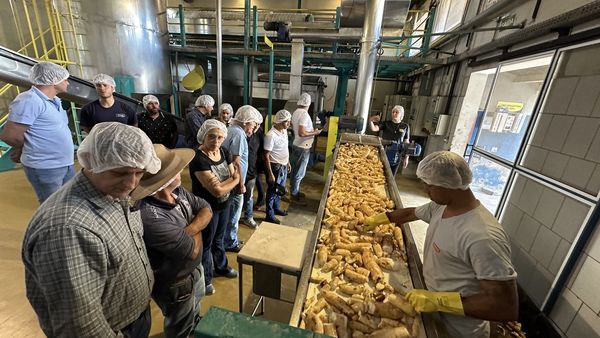 Na Agroindústria Magno Mandioca, que processa cerca de 300 toneladas da raiz por mês durante a safra, Guilherme Della Coletta, engenheiro agrônomo responsável pelas áreas de cultivo da mandioca e pelo processamento na fábrica, guiou os visitantes em todas as etapas, desde a chegada da matéria-prima até o armazenamento do produto final, destacando a importância crucial da mão de obra nesse setor.