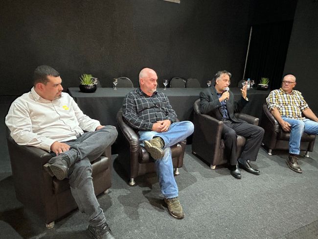 Debate sobre os desafios de mercado. Da esquerda para a direita: Rodrigo de Cunha Tavares, da empresa Ouro Safra; Sandro Parise, engenheiro agrônomo da CATI Regional Assis e integrante do GT de Grãos; Leonardo Amazonas, analista de Mercado da Soja, da Companhia Nacional de Abastecimento (Conab); Silvio Maluta, produtor rural.