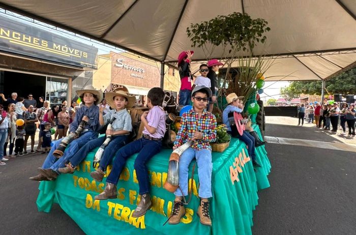Em um carro ornamentado com produtos da agropecuária, famílias representadas por diversas gerações desfilaram pelas ruas mostrando a importância do trabalho dos homens e mulheres que todos os dias se dedicam, faça sol ou chuva, para que o alimento chegue à mesa de toda a população.