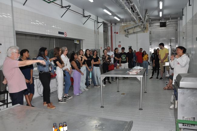Os visitantes também conheceram os insumos, as características, os processos e os equipamentos ligados a produtos cárneos com os pesquisadores Ana Lúcia da Silva Corrêa Lemos, Darlila Ap. Gallina, José Ricardo Gonçalves e Márcia Mayumi Harada Haguiwara, no Centro de Tecnologia de Carnes (CTC), podendo provar ao final snacks de carne de frango da Jack Link’s, do grupo JBS.