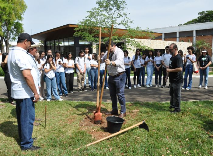 “Quando falamos de qualidade, de tecnologia e de inovação, a gente está falando da APTA, do ITAL principalmente. Para nós, do Senai, é uma alegria estarmos aqui”, destacou Michele Scarton, instrutora do Curso Técnico em Alimentos, que acompanhou o plantio de uma muda de cacaueiro no início do primeiro dia.