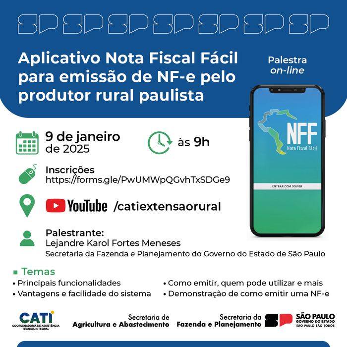 Palestra on-line “Aplicativo Nota Fiscal Fácil para emissão de NF-e pelo produtor rural paulista”