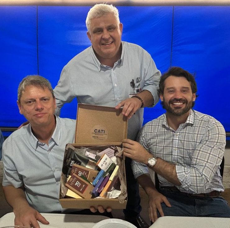 E aproveitando o momento de entregas especiais, o diretor da CATI entregou ao governador, Tarcísio de Freitas, uma caixa de chocolates produzidos com amêndoas de cacau cultivado em solo paulista por produtores que integram o Programa Cacau SP, da Secretaria de Agricultura, desenvolvido pela CATI e por parceiros, mostrando que, entre tantas cadeias produtivas destacadas durante o evento, agora São Paulo tem cacau!