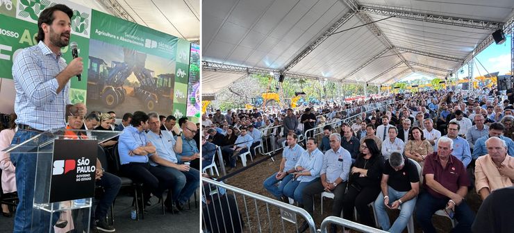 “Hoje, temos a alegria de compartilhar algo que os produtores rurais nos pediam muito, que são as máquinas. Uma pá carregadeira, um rolo compactador e um trator agrícola podem dar suporte, principalmente para os pequenos produtores, e apoiar as prefeituras na manutenção de estradas, por exemplo, o que possibilita que as crianças cheguem à escola, que a produção seja escoada, que as famílias rurais tenham seu direito de ir e vir garantidos”, frisou Tarcísio de Freitas, diante de um público de mais de 300 pessoas de todas as regiões paulistas.